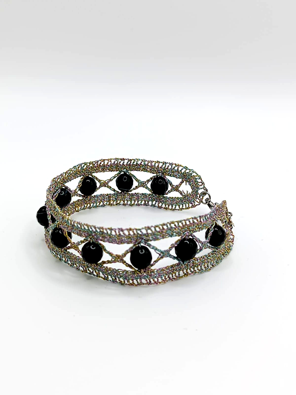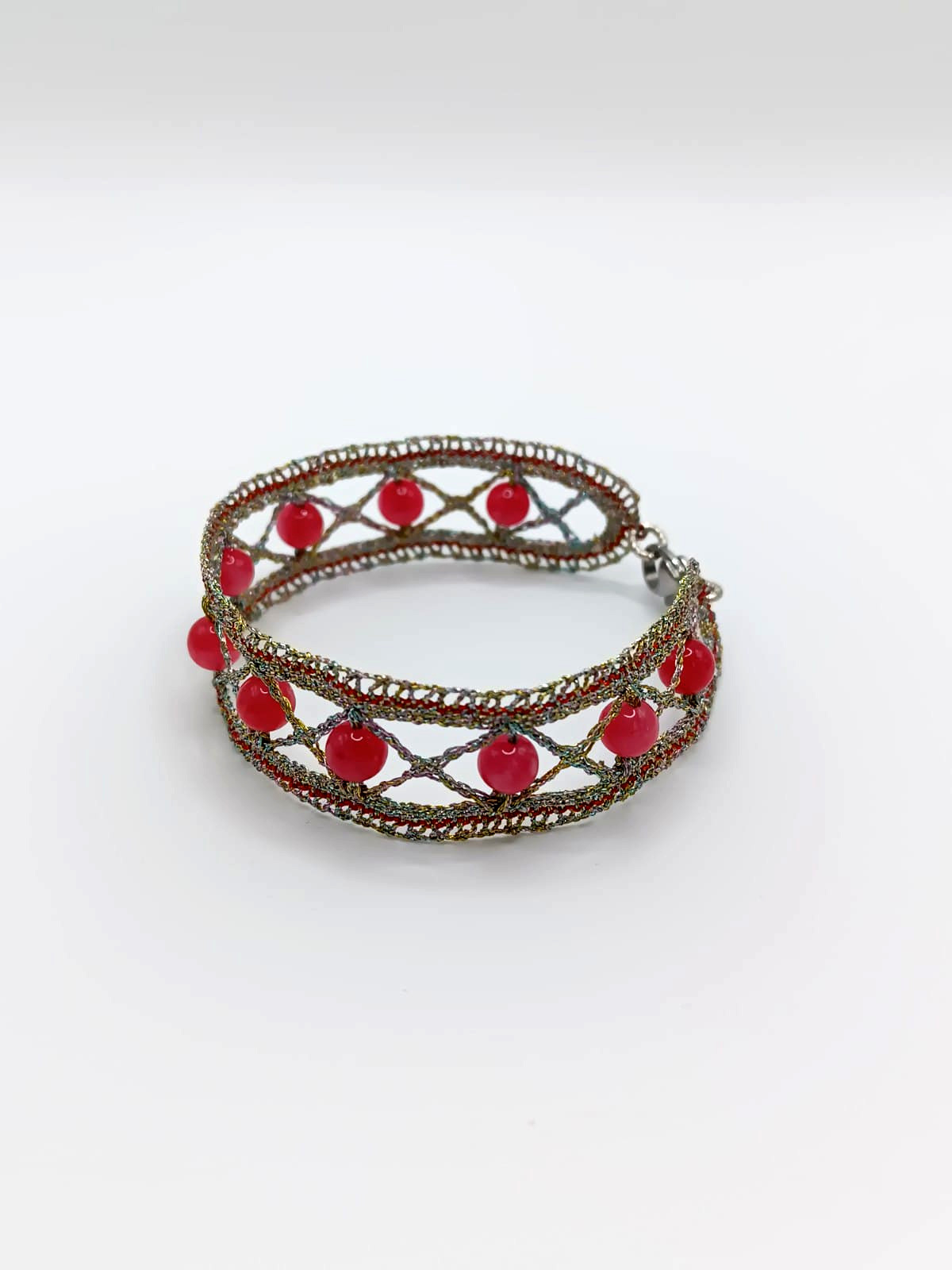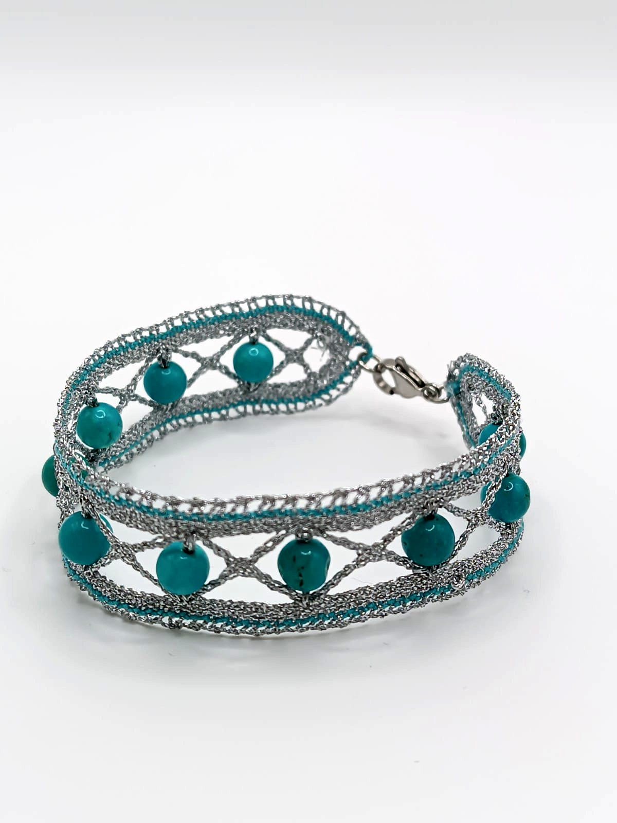 Bracciale da donna Punta Tela realizzato a Tombolo con il filo Lurex.