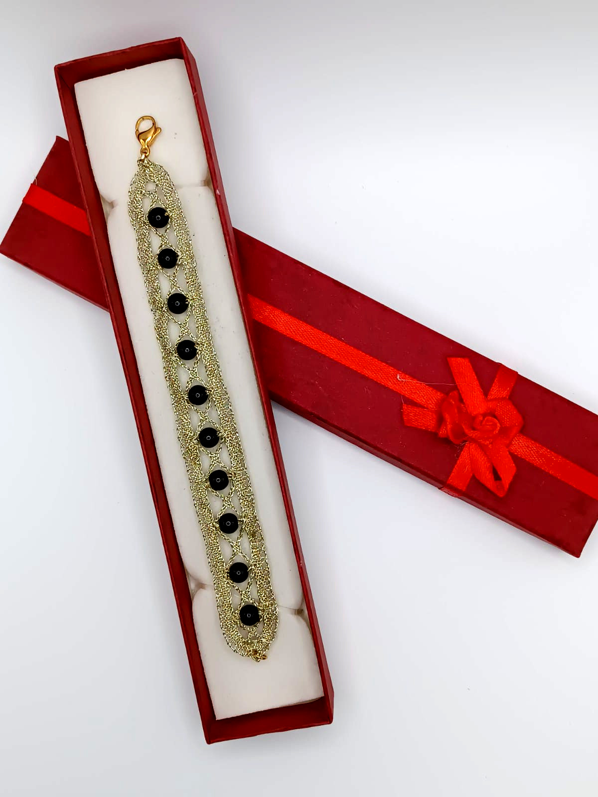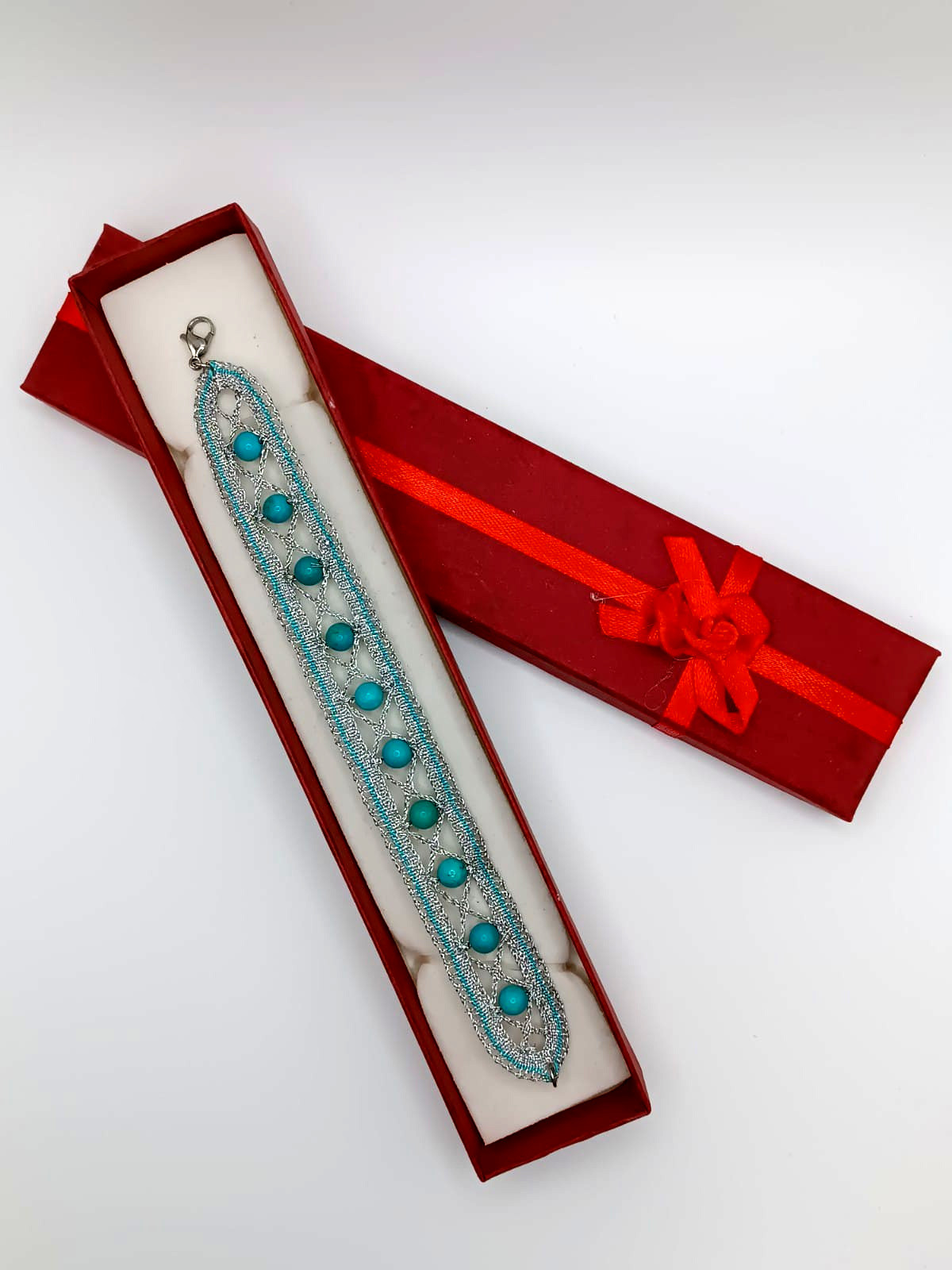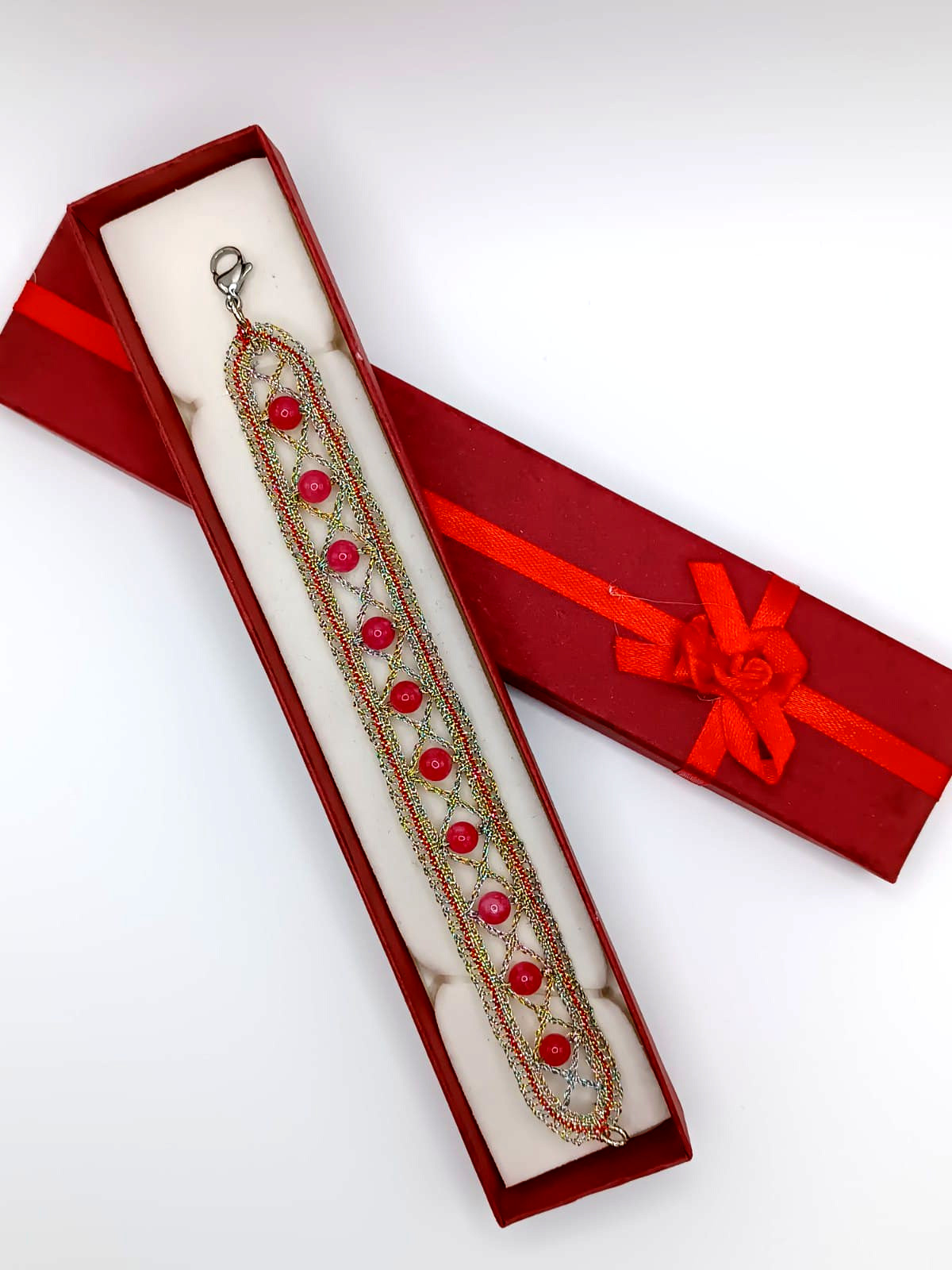 Bracciale da donna Punta Tela realizzato a Tombolo con il filo Lurex.