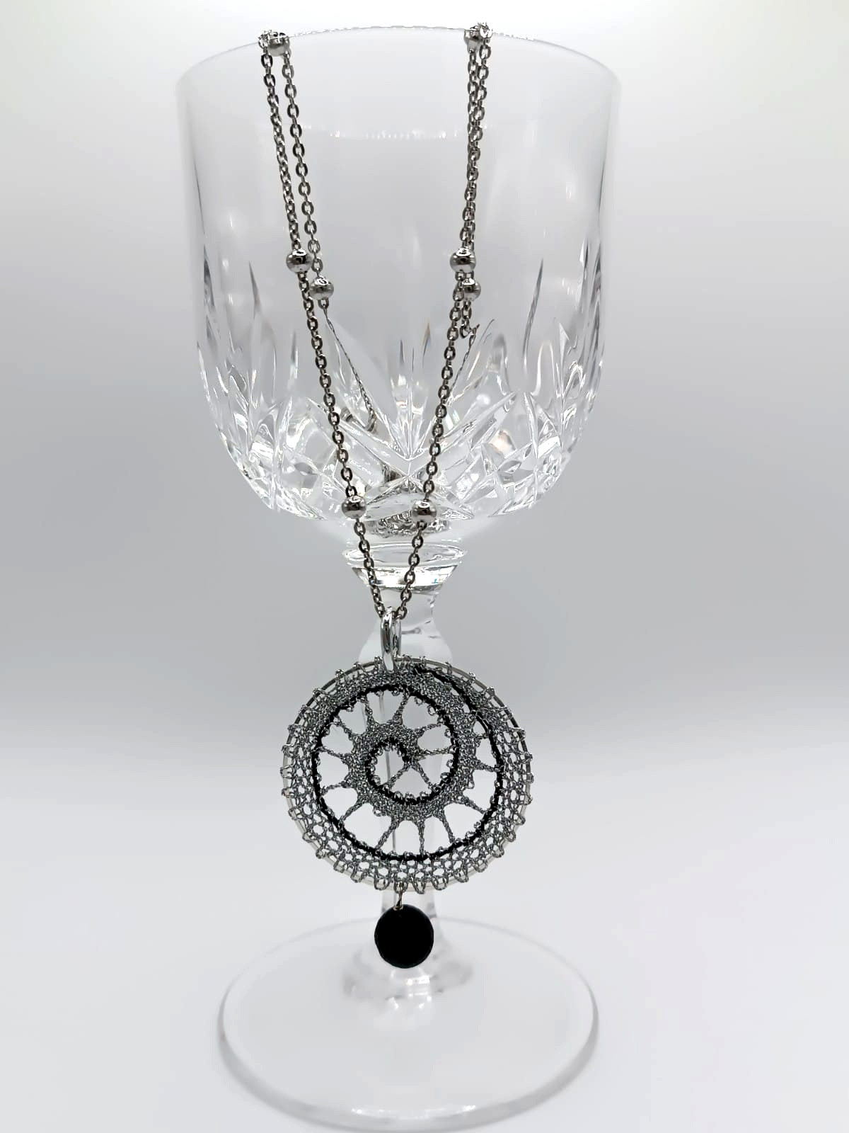 La Sfera 4 , simbolo della perfezione, è realizzata con punto tela e mezzo punto grazie all’intreccio di fuselli all’interno di una struttura di diametro 4 cm. Il filo lurex utilizzato per il gioello, può essere scelto di diversi colori.